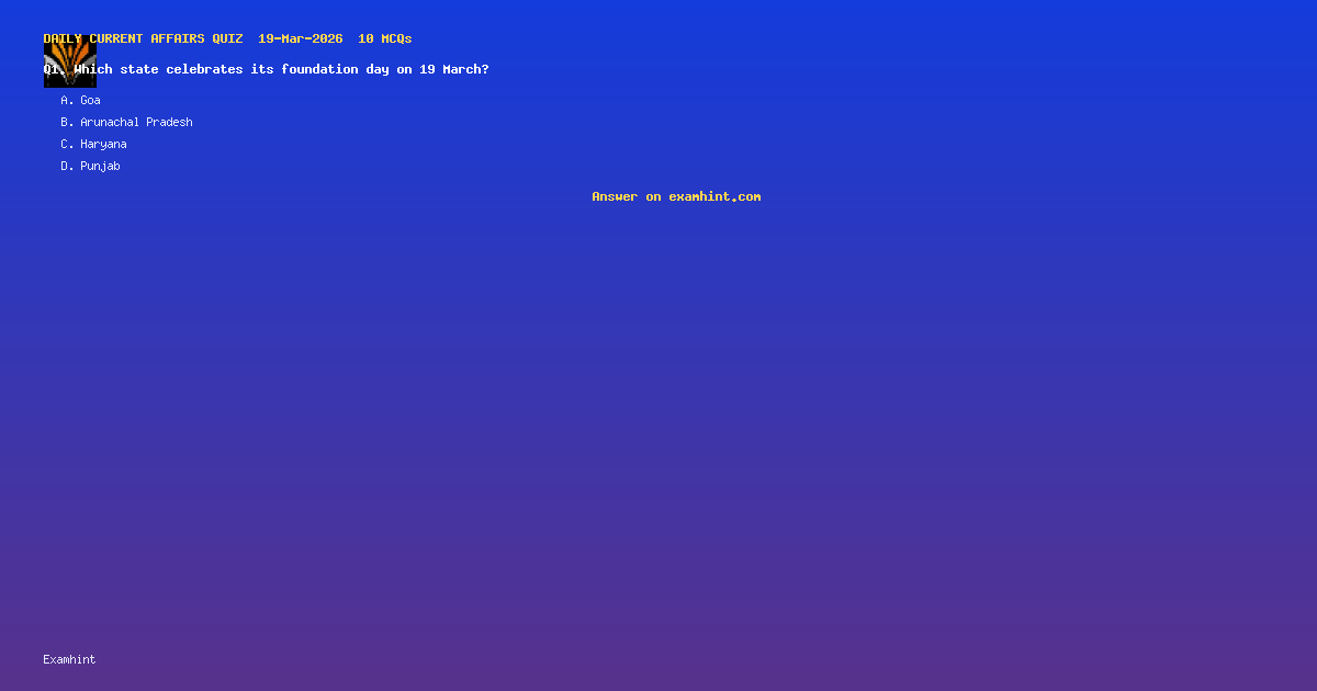 Current Affairs 19-Mar-2026 – Objective Questions (Hindi)